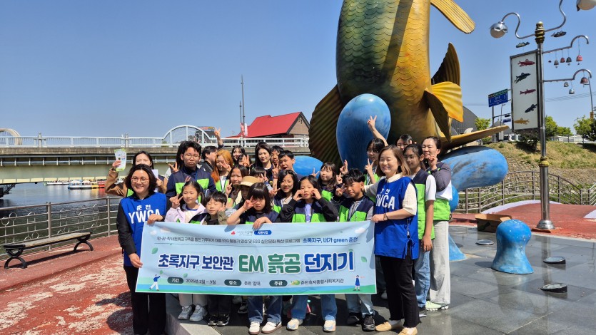ESG 사업 '초록지구, 내가 green 춘천' 초록지구 아동보안관 줍깅 및 EM 흙공 던지기 진행