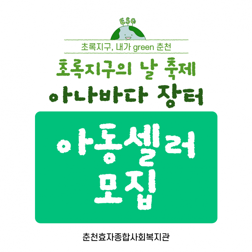 2026년 2차년도 ESG 기획사업 [초록지구, 내가 GREEN 춘천] 초록지구의 날 축제 아동셀러 모집