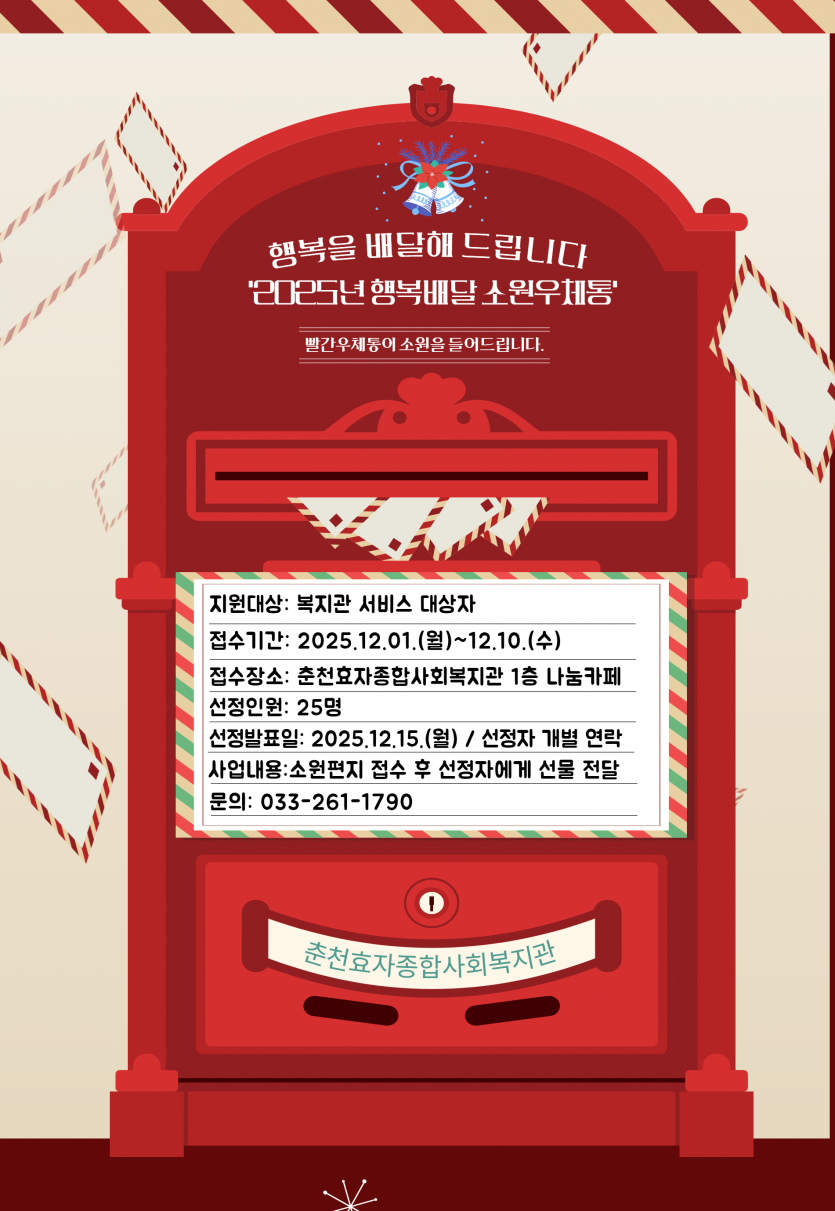 2025년 '행복배달 소원우체통 이벤트' <행복한 겨울을 나기 위한 소원을 이루어드립니다!>(진행 중)
