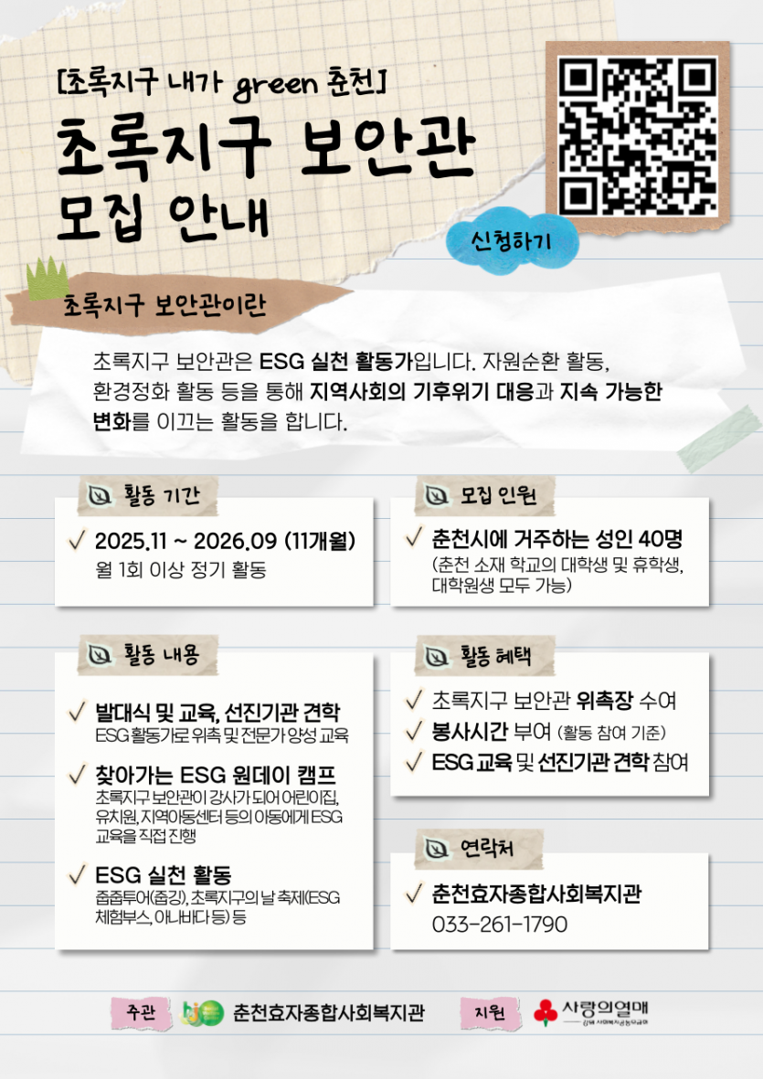[초록지구, 내가 green 춘천] 초록지구 보안관 모집 (진행 중)